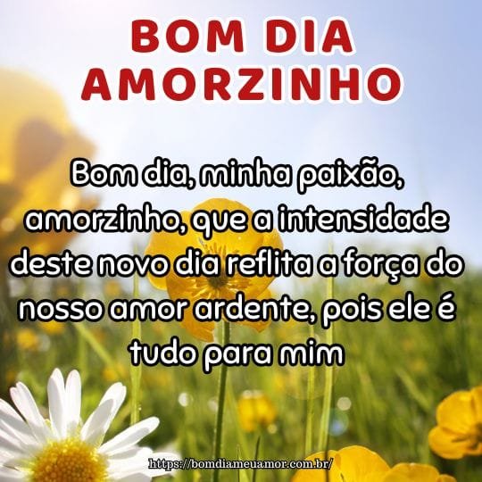 Amorzinho, bom dia! Que a força da manhã te motive intensamente, pois juntos somos invencíveis em nosso amor.