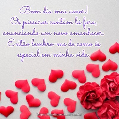 Bom dia, amor! Os pássaros cantam lá fora, mas é a melodia da tua voz que embala os meus sonhos e acalma a minha alma.