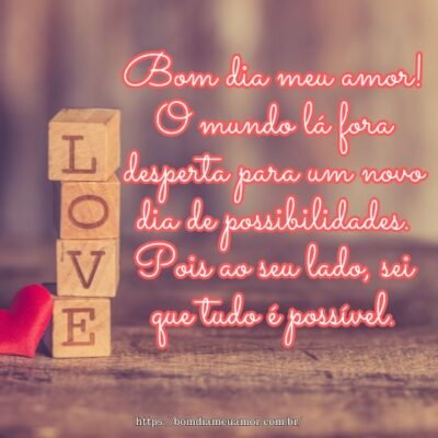 Meu amor, cada novo amanhecer é uma oportunidade de te amar ainda mais. Então, que este dia seja repleto de sorrisos e realizações para nós dois. Bom dia!