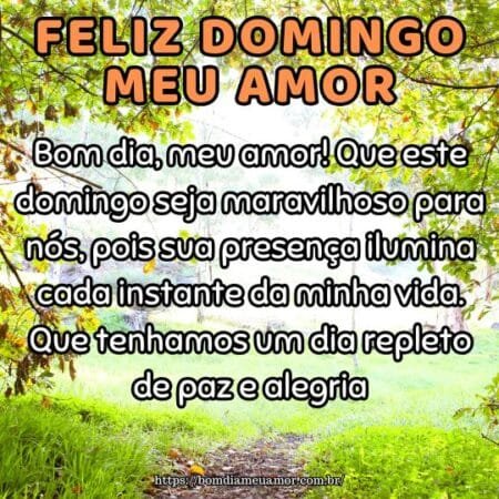 Bom dia, meu amor! Que este domingo seja maravilhoso para nós, pois sua presença ilumina cada instante da minha vida. Que tenhamos um dia repleto de paz e alegria.